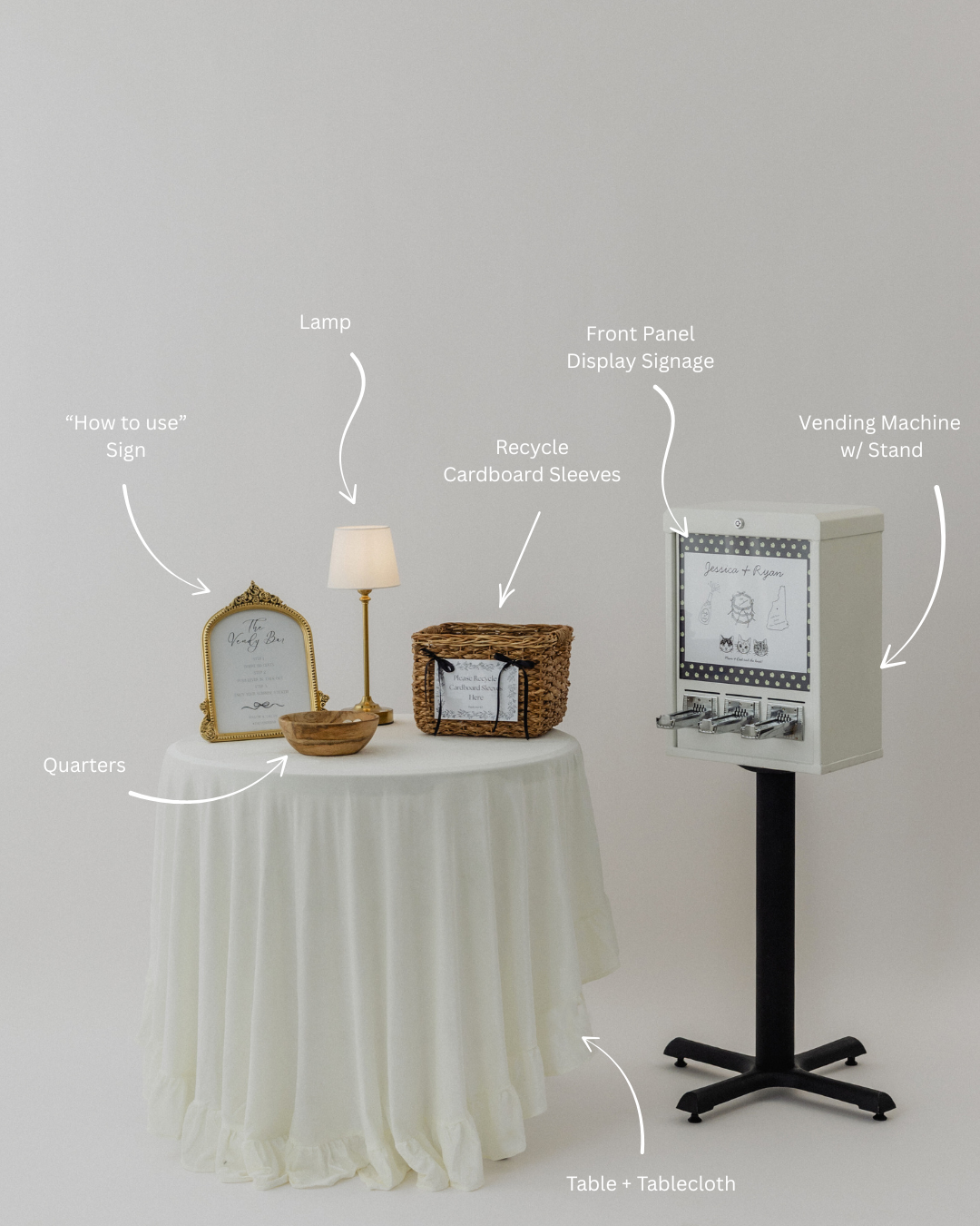 Multi-day business hosting is designed for simplicity and flexibility. This option includes the vending machine and custom front panel signage only. The machine is stocked and ready to use, with guests or customers using their own quarters throughout the duration of the hosting period. Ideal for storefronts, conferences, and extended activations.