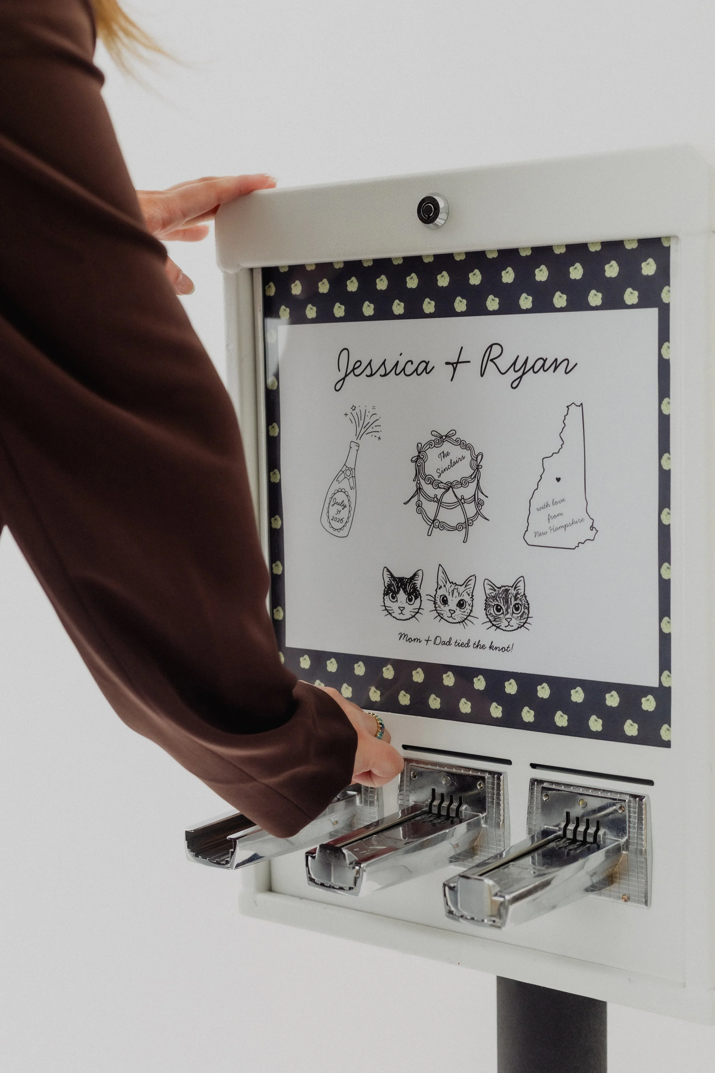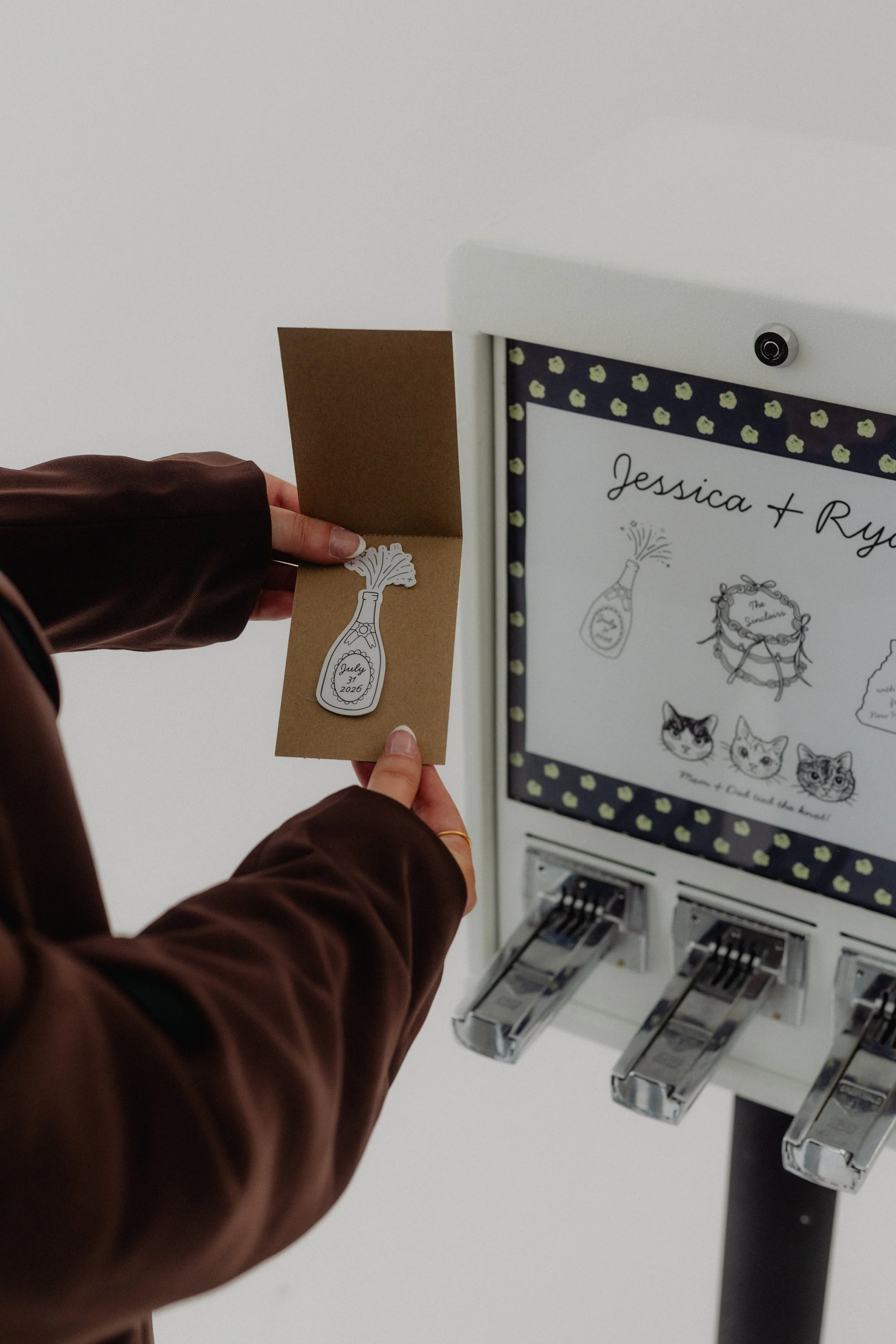At The Vendy Bar, we turn moments into memories—one custom sticker at a time. Our custom sticker vending machines bring a fun, interactive experience to weddings, parties, and special events.